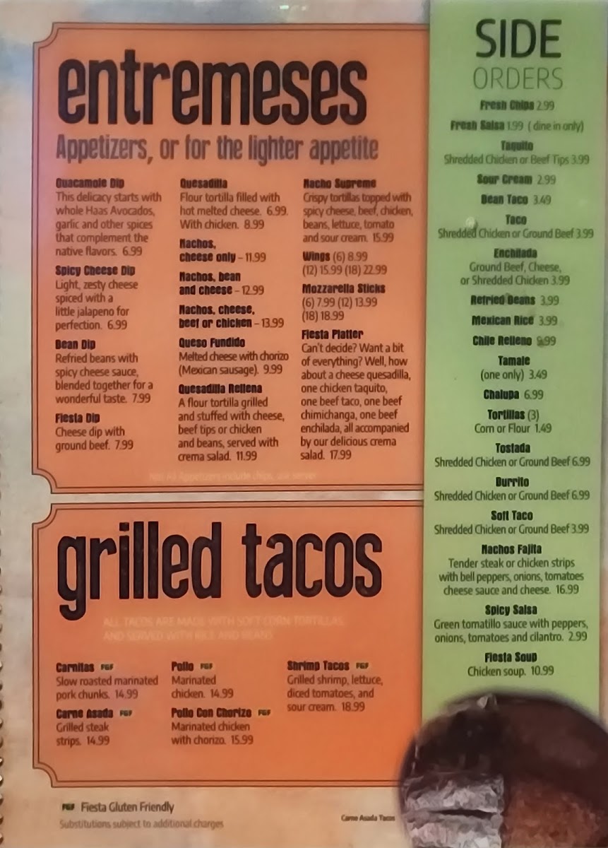 The menu at Fiesta Tapatia offers a straightforward yet satisfying selection of Mexican dishes that feel right at home in its lively, casual setting. Whether you’re in the mood for sharing starters like chips and salsa or indulging in hearty plates such as fajitas or wet burritos, the menu complements the warm and welcoming atmosphere perfectly.